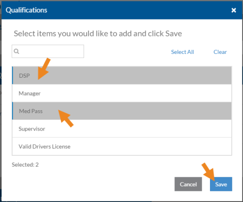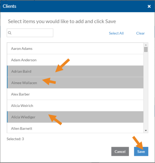 Step Results: The selected clients appear in the Clients card. If any of the clients have special qualifications, they will appear on the Client Qualifications card.