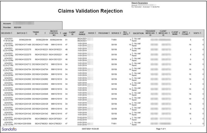| Received | the date the claim was received by Sandata Claims Validation |