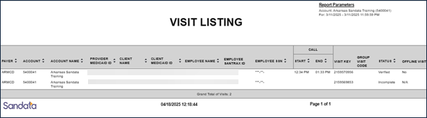 Use this report to view all visits for the selected day and review the visit status and call in/out times in one report.