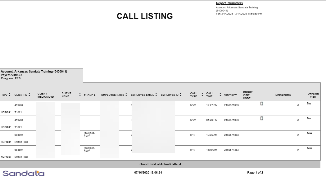 | Service HCPS | the service code performed for the call (this appears under the Client ID) |