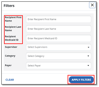 - Use the filters on the right to find the recipient. Then select Apply Filters.
