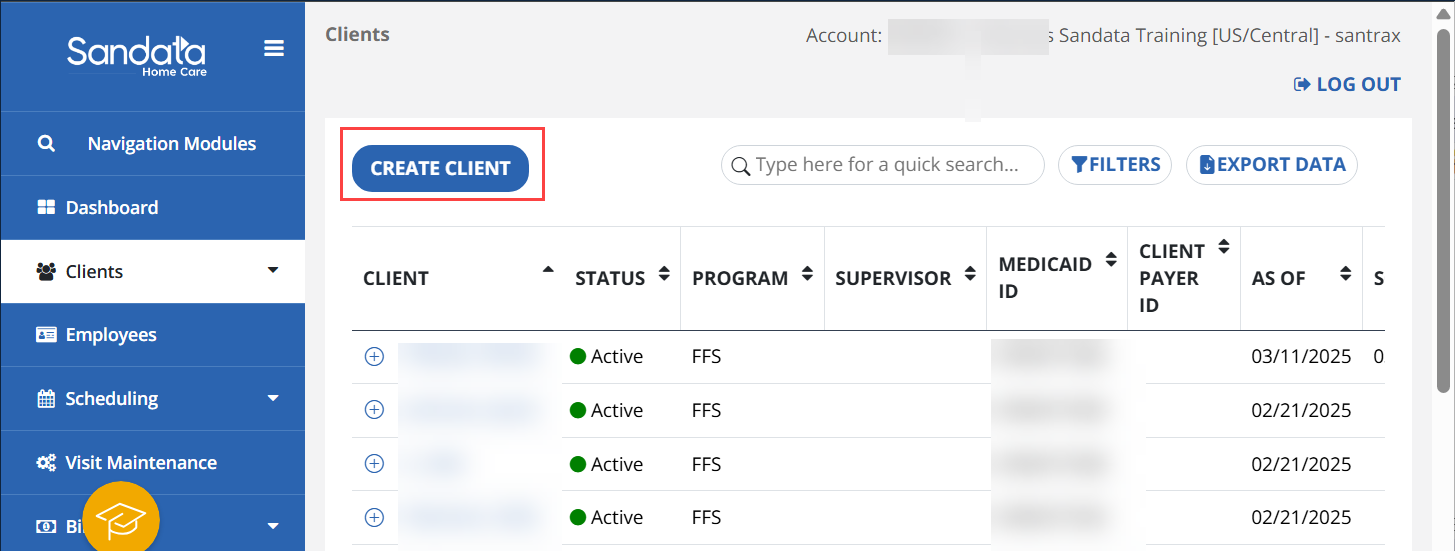 Some state programs provide a file feed to Sandata to bring in client information. This usually comes from the Medicaid Management Information System (“MMIS”). This means you cannot add your own client information but will either receive it directly into your account or need to search for a client to add them.