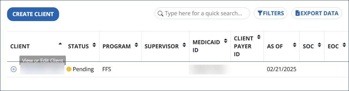 Note: You may not be able to update some fields in a client’s profile depending on your state program’s configuration. Search for clients who may have been automatically brought in before attempting to add specific clients. If you attempt to add a client that has already been connected to your agency, you will be informed the client already exists.