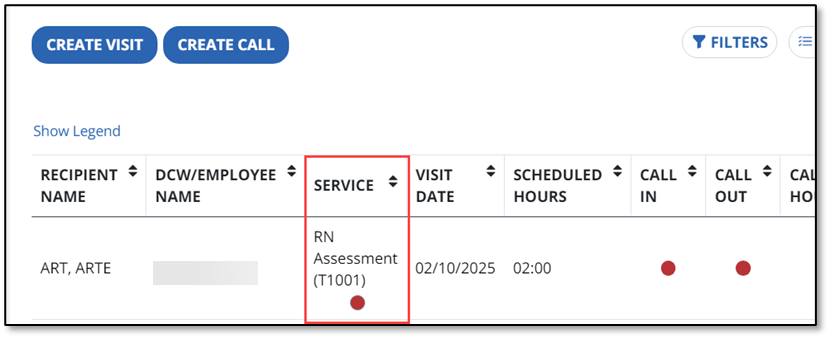 - Select SAVE. You’ll see the correct service in the visit line. If all exceptions are resolved, the visit status will show as Verified.