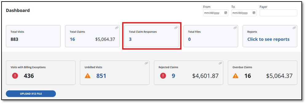 If you do not see any number in the Total Claim Responses tile, please refresh the page. This will not duplicate or harm any claims.