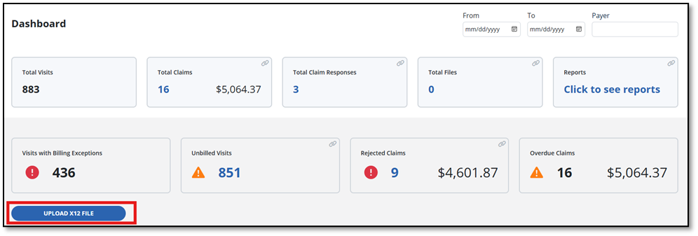 Billing remittance or 835 files for billing information can be added from the Billing Dashboard.
