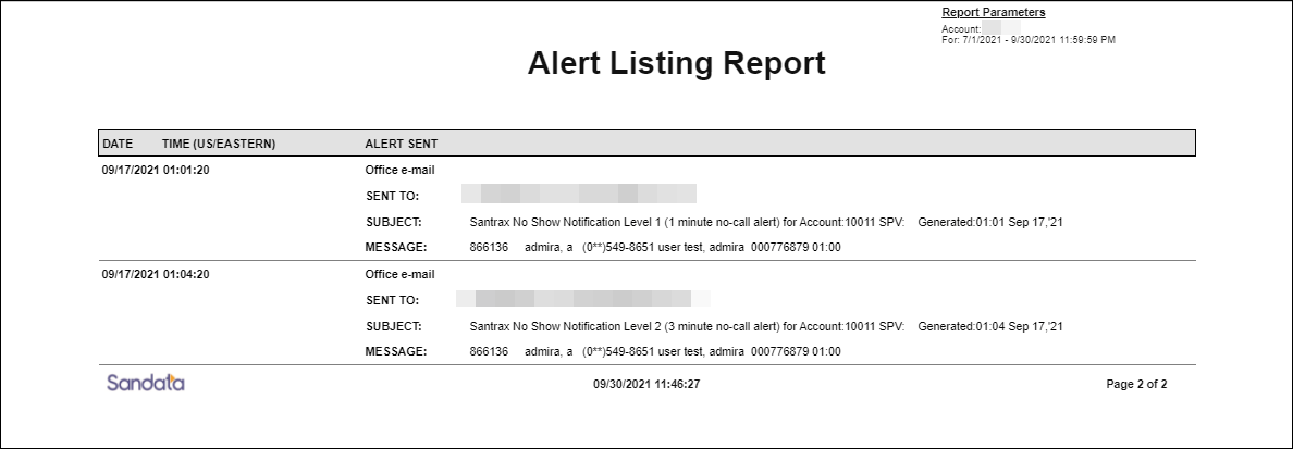 This report shows a listing of all alerts sent during the selected date range. The report includes information about each alert sent, including the message sent, the recipient, and the date and time of the report.
