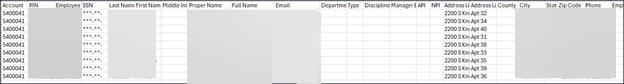 This report produces an excel spreadsheet that includes details for all employees, regardless of status, for that specific date. This includes all details about the employee including demographics, address, hire date, termination date, and other data points.  If specific client data items are not collected by the program, that field will be blank on the report output.