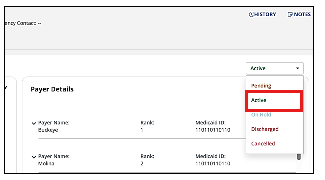5. When the official date of change arrives, the status will be updated from Pending to Active. You will also see a new entry in the History noting the change.