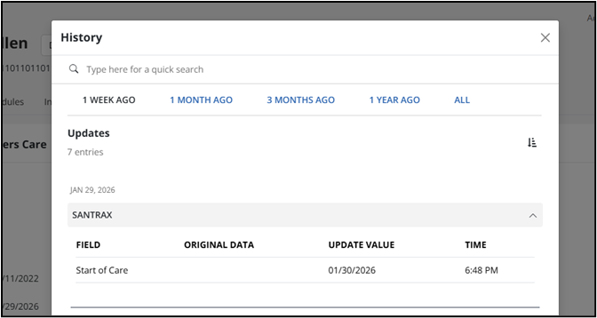 4. Keep in mind that the Status of the Program has not changed yet. To confirm that you have accurately initiated the future date change go to the History Link found in the upper right corner on the Recipient profile, to see the fields that were changed.
