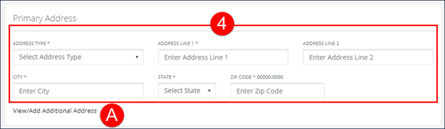 4. Enter/Select all applicable fields in the Primary Address section.