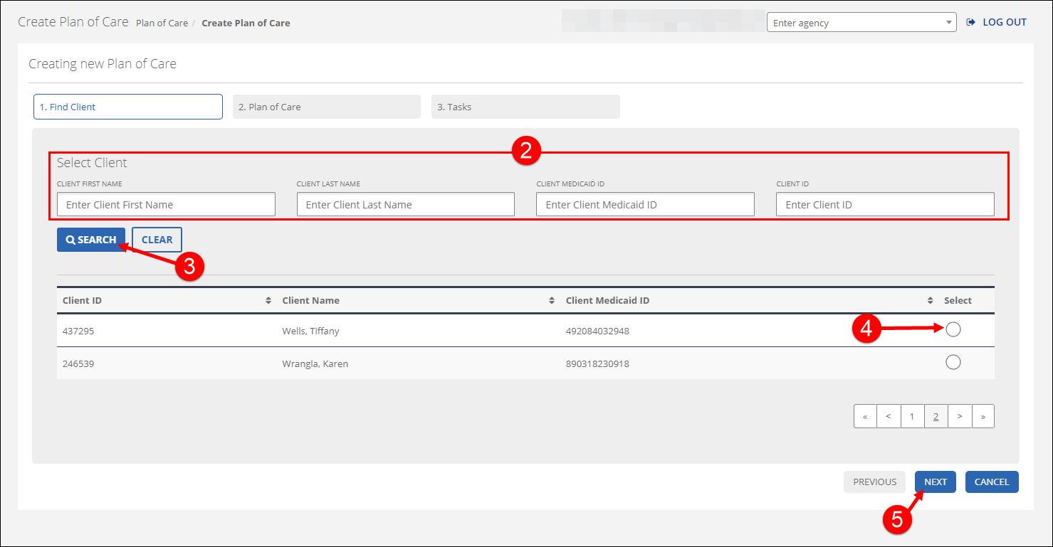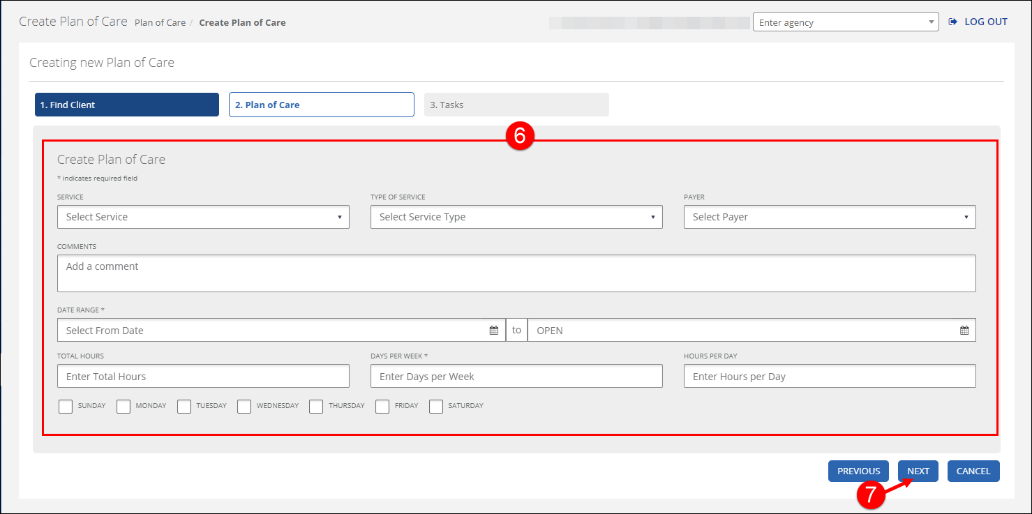 1. Navigate to the Creating New Plan of Care screen. (Plan of Care > Create Plan of Care)