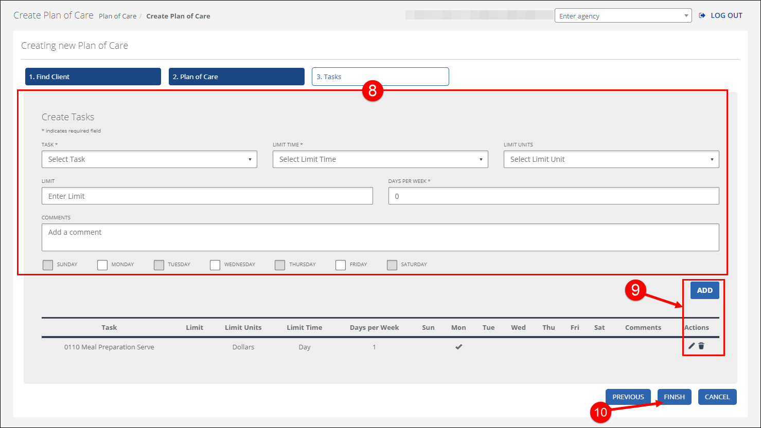 6. Enter/Select all applicable fields on the Plan of Care tab.