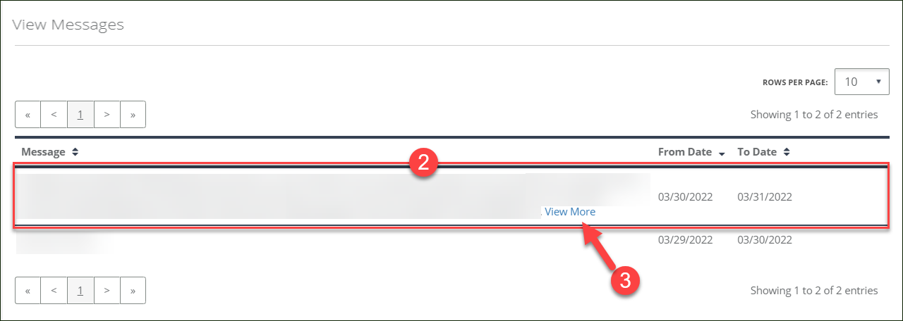 3. Click the View More link to display a pop up screen with the full message, if applicable.